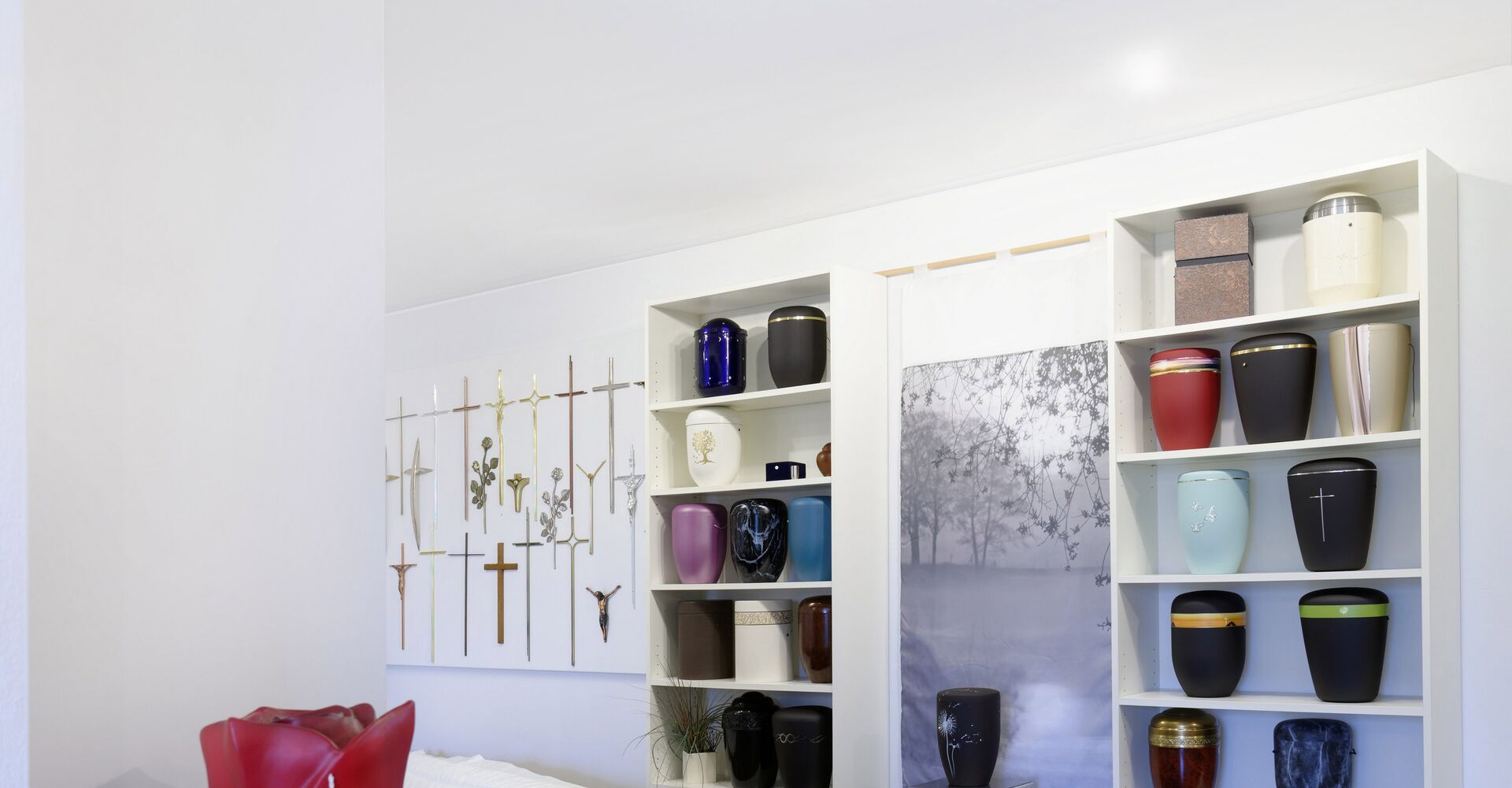 In unseren Räumlichkeiten präsentieren wir Ihnen eine vielfältige Auswahl an Särgen, Urnen und weiteren Pietätsprodukten. Unser Sortiment deckt sämtliche Preisklassen ab, sodass wir Ihnen eine individuelle Gestaltung der Trauerfeier und Bestattung gewährleisten. Wir beraten Sie gerne zu unseren Produkten – transparent und fair.